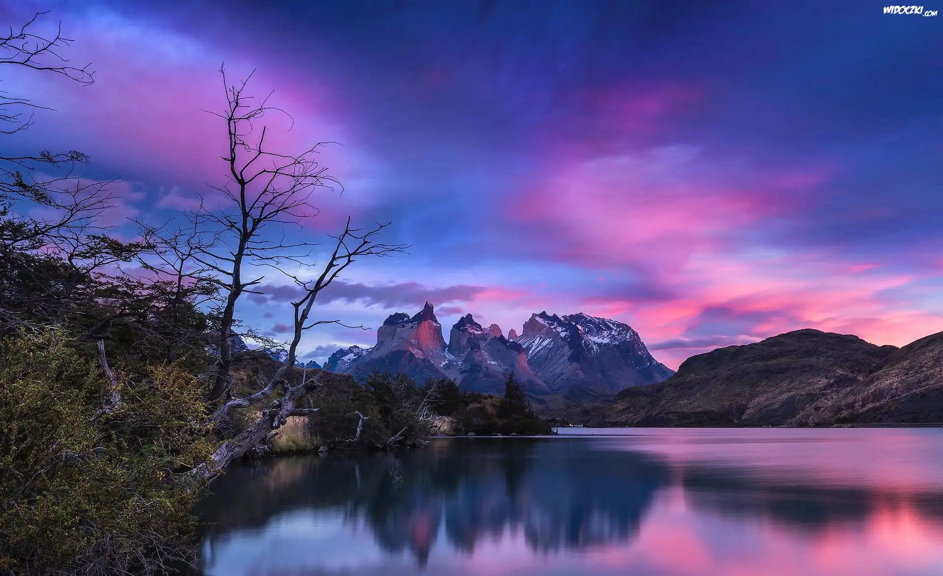 Zdjęcia, Jezioro, Góry, Zaróżowione, Niebo