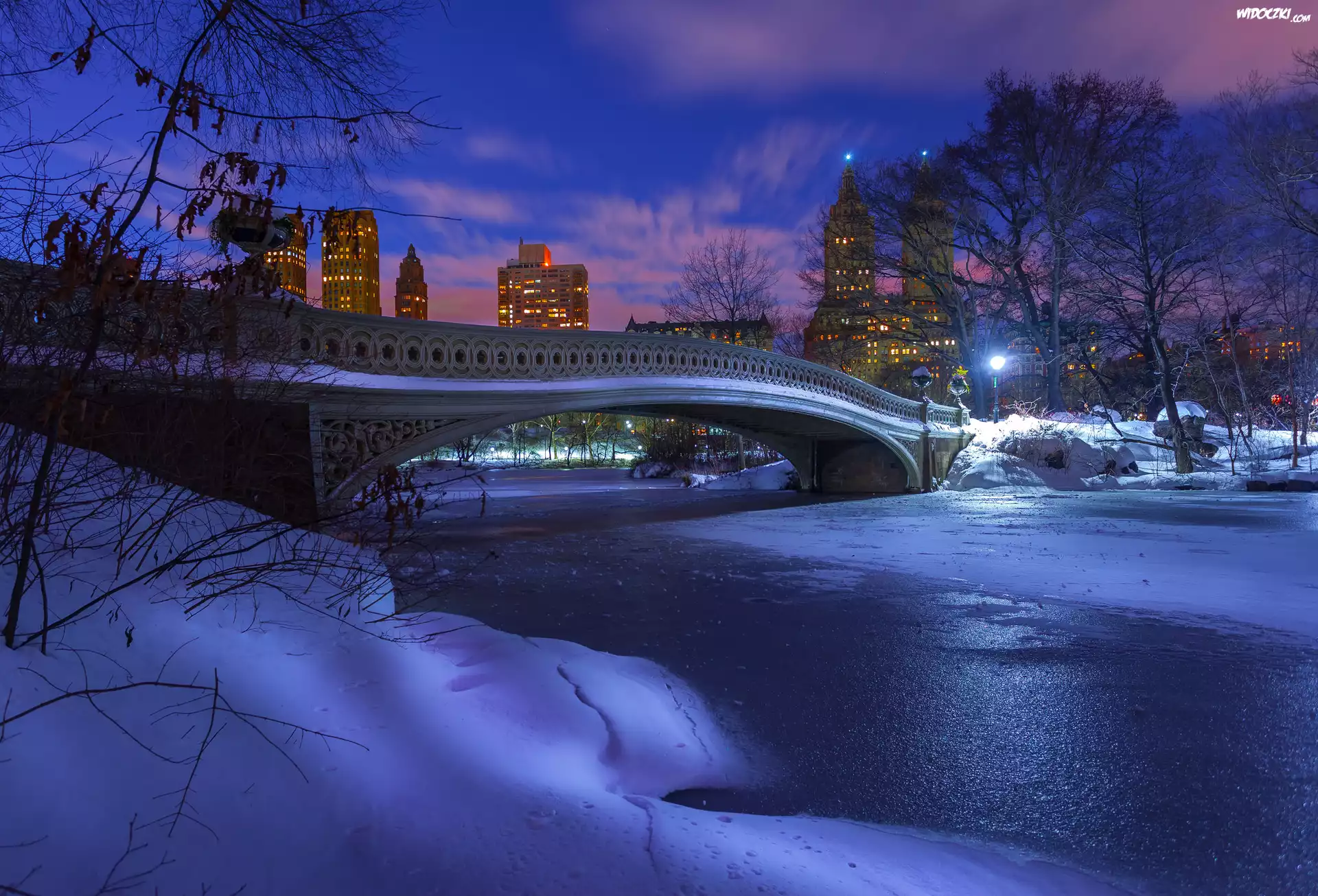 Nowy Jork, Central Park, Zima, Rzeka, Most