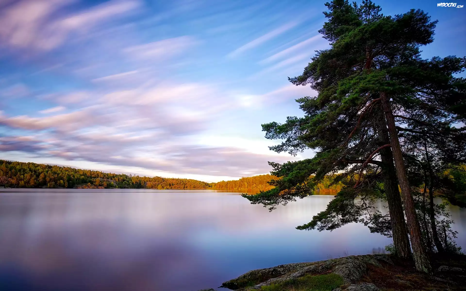 Zdjęcia, Jezioro Källtorpssjön, Szwecja, Drzewa, Jesień