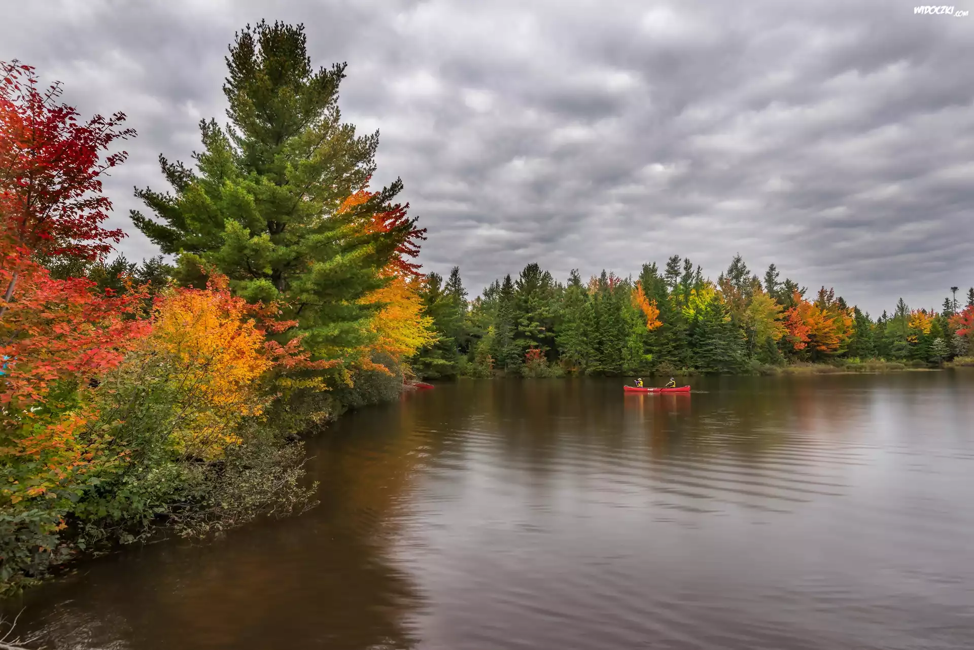 Zdjęcia, Kajak, Jesień, Drzewa, Rzeka
