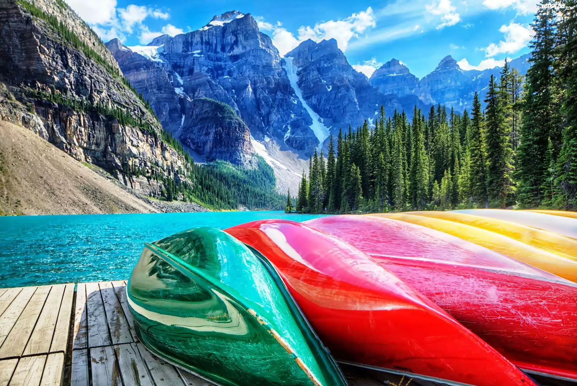 Kajaki, Góry, Lasy, Jezioro, Kanada