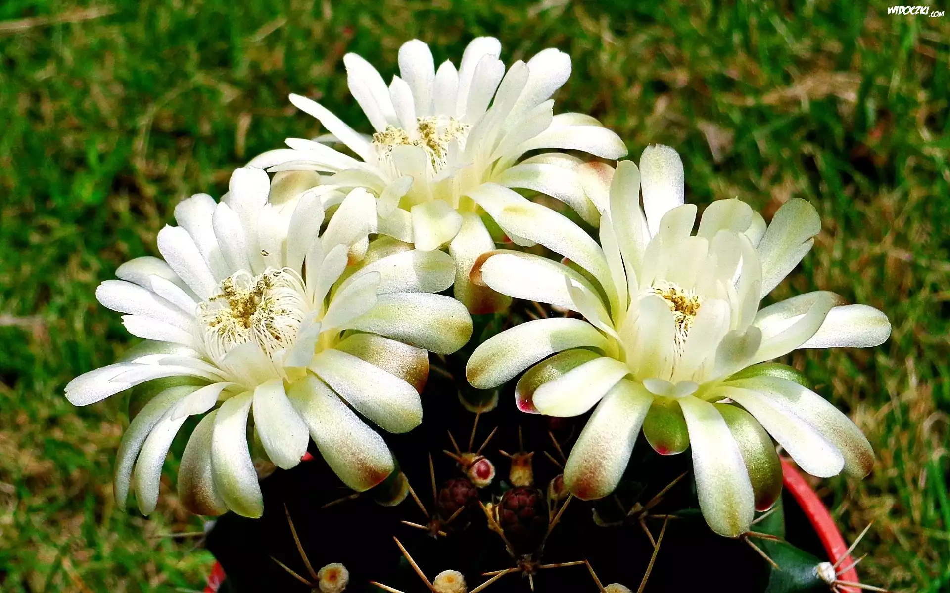 Zdjęcia, Kaktus, Białe, Kwiaty, Ogród