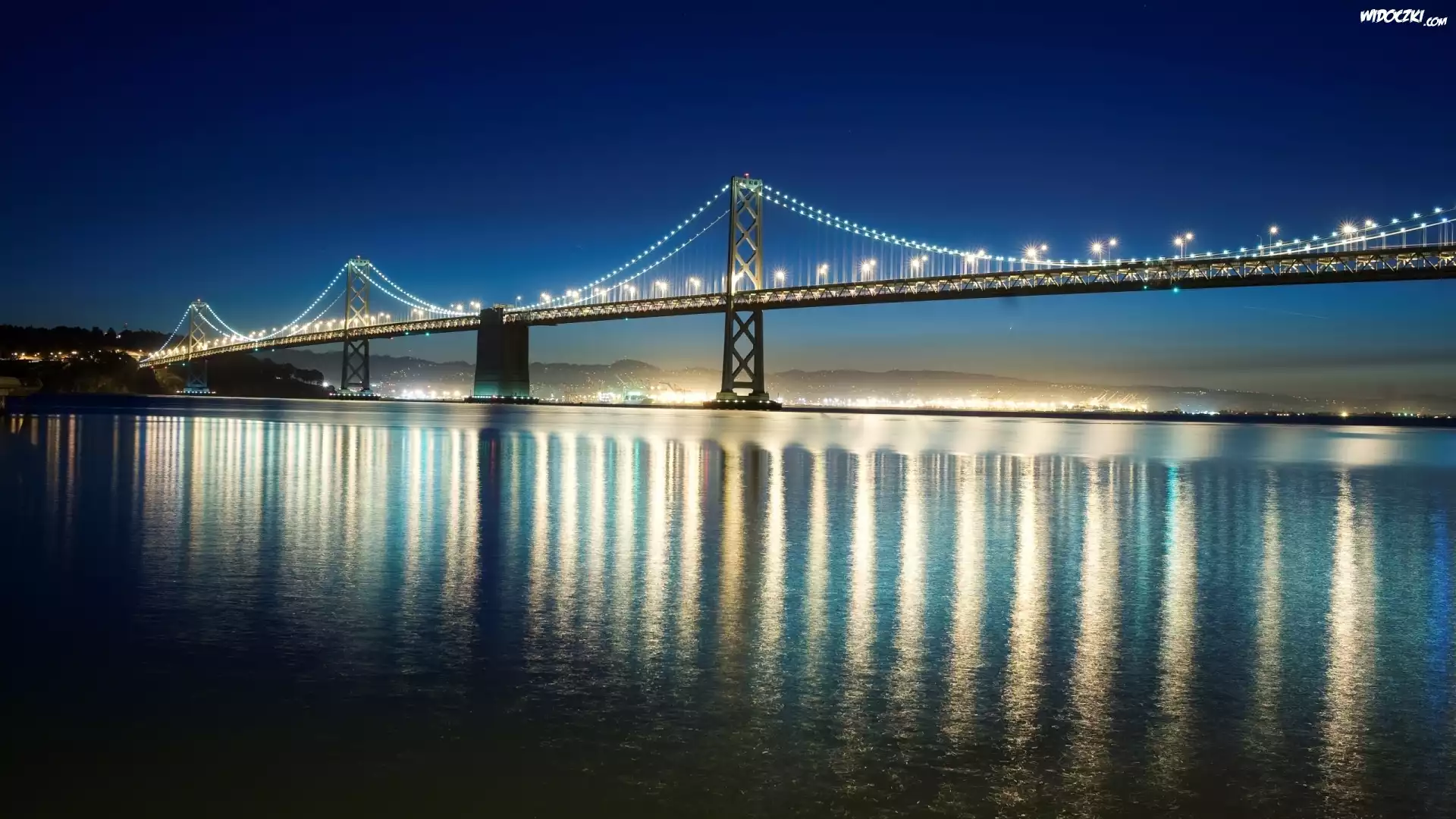 Zdjęcia, Stany Zjednoczone, Kalifornia, Most San Francisco-Oakland Bay Bridge, Rzeka, Noc