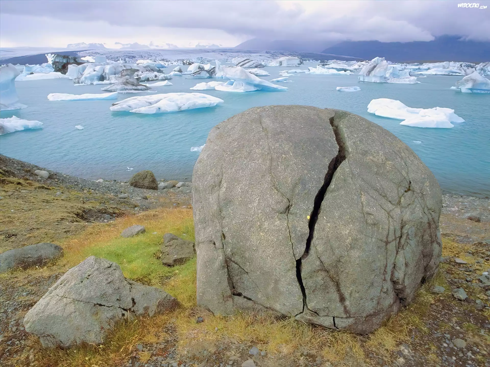 Zdjęcia, Kamień, Trawa, Woda, Lód