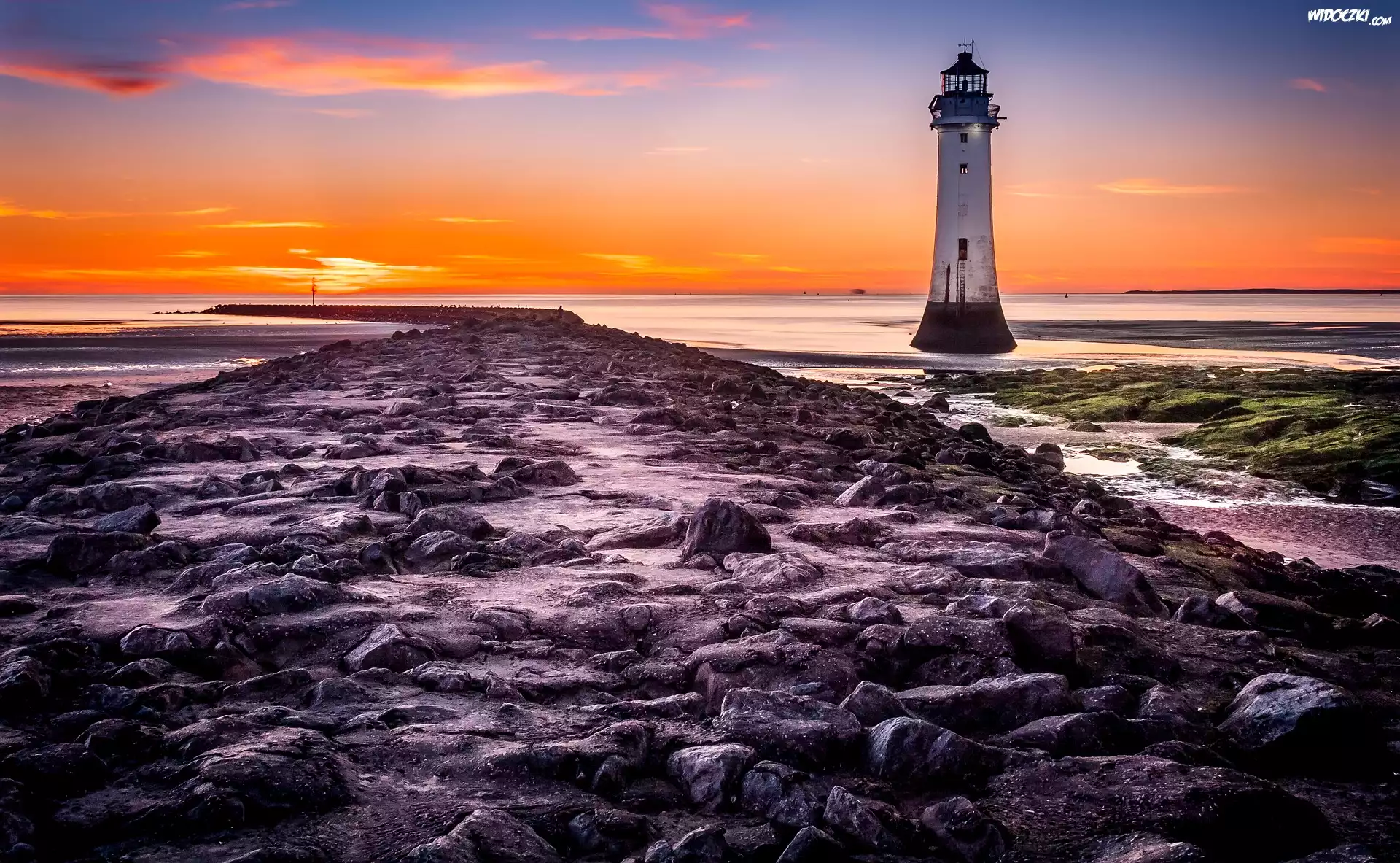 Zdj臋cia, Anglia, New Brighton, Latarnia morska New Brighton, Morze, Kamienie
