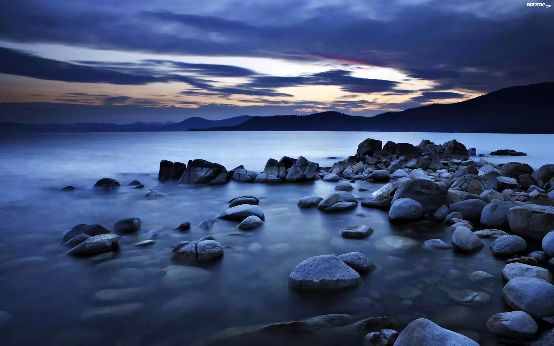 Zdjęcia, Jezioro, Kamienie, Chmury