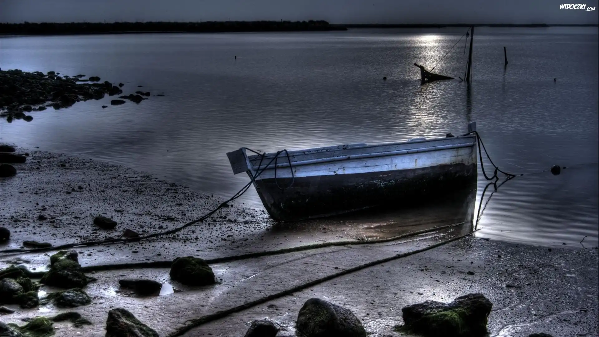 Zdjęcia, Jezioro, Kamienie, Łódka