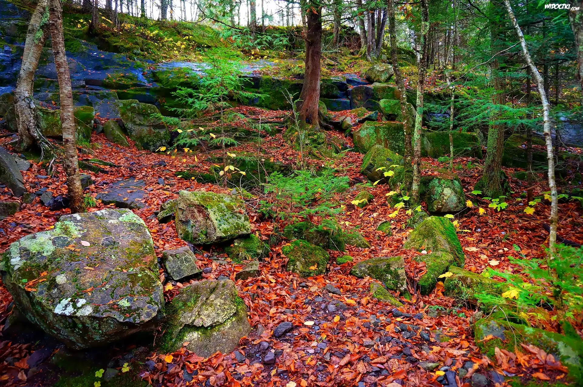 Zdjęcia, Las, Kamienie, Liście