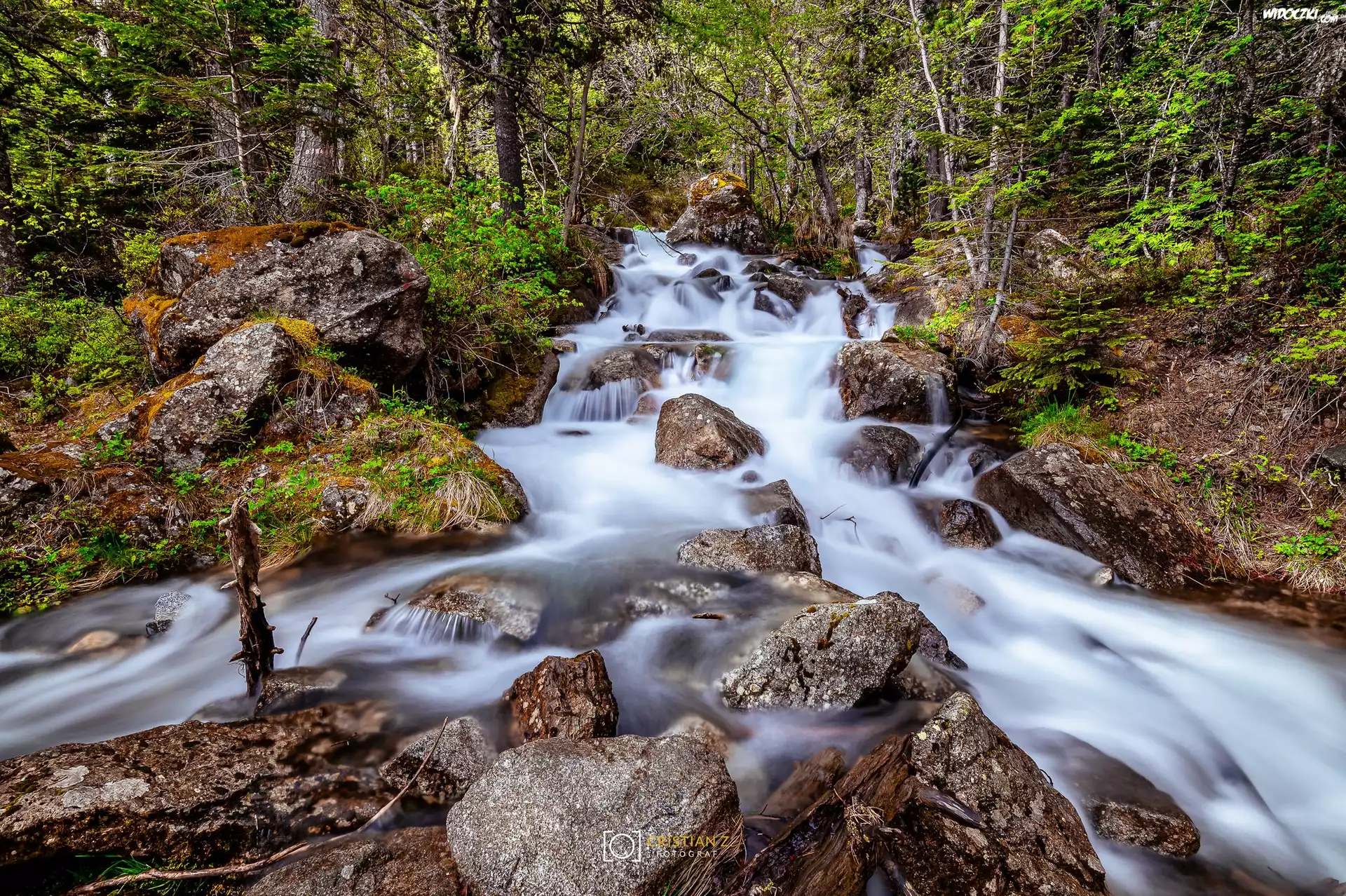 Zdjęcia, Rzeka, Kamienie, Las, Drzewa, Roślinność