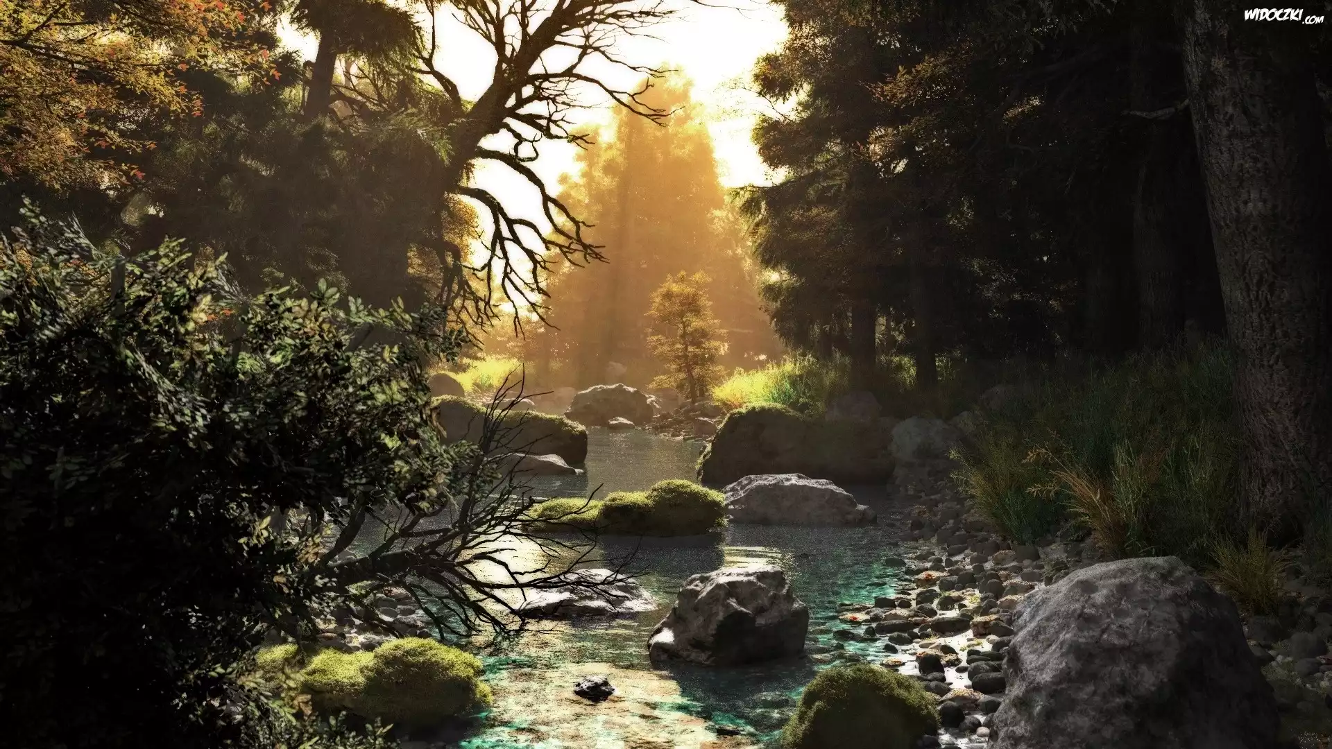 Zdjęcia, Las, Kamienie, Rzeczka