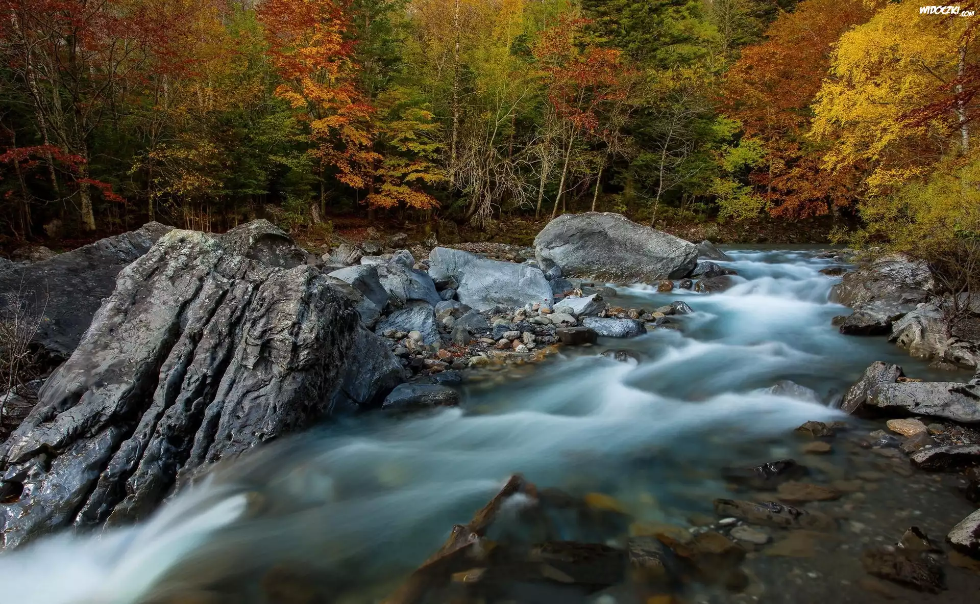 Zdjęcia, Las, Kamienie, Rzeka