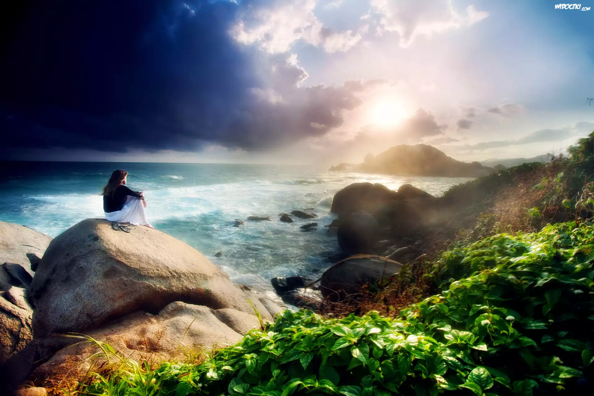 Zdj臋cia, Morze, Kamienie, Kobieta