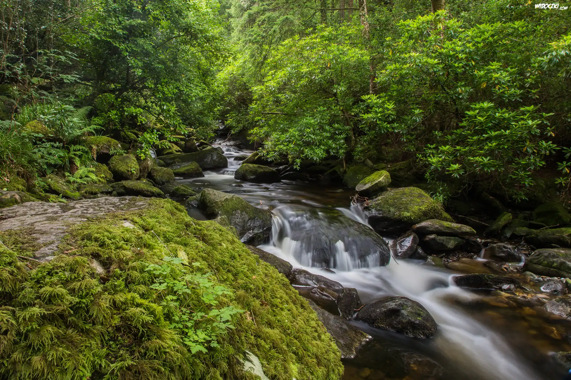 Zdjęcia, Irlandia, Park Narodowy Killarney, Rzeka Owengarriff River, Las, Kamienie