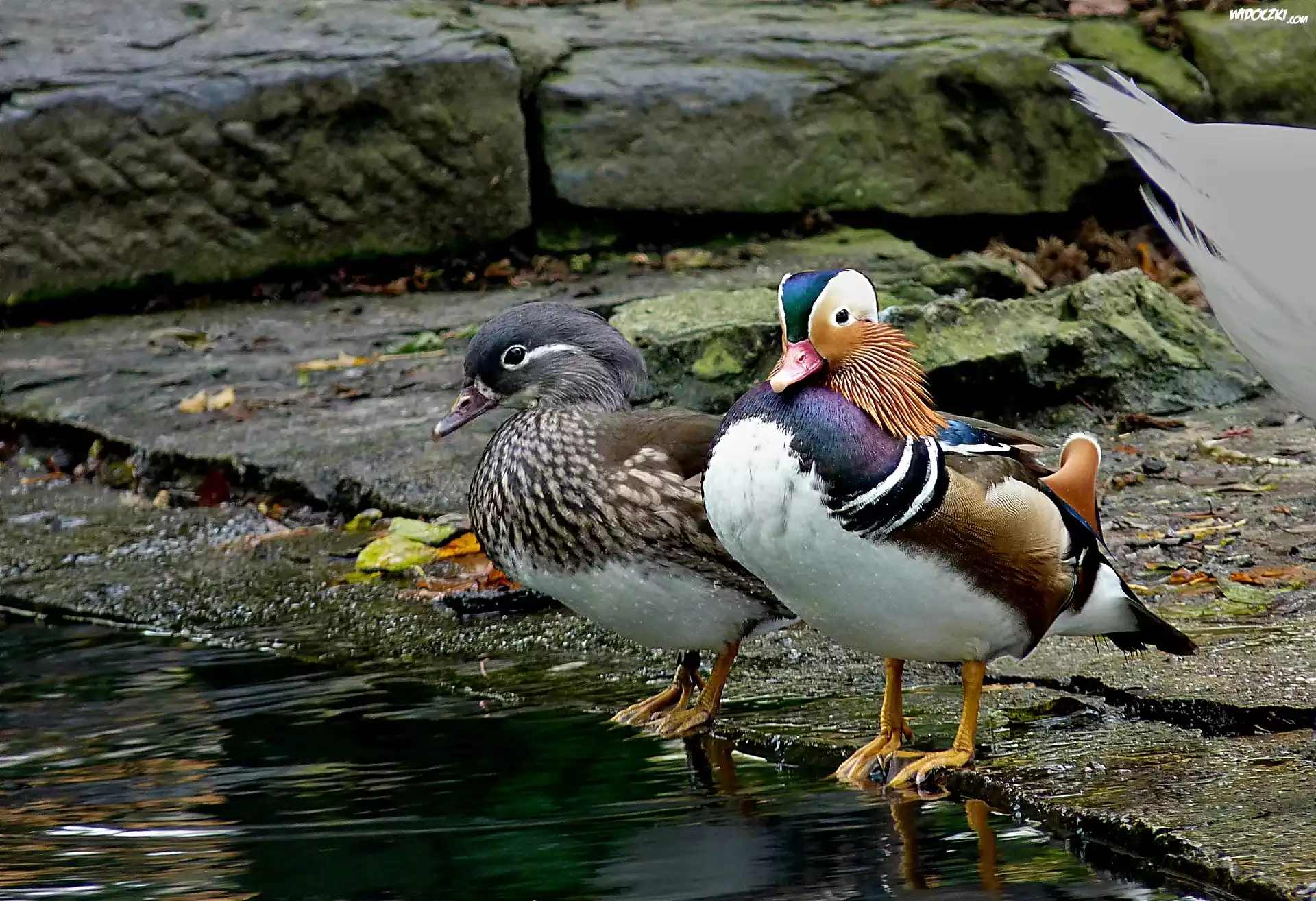 Zdjęcia, Kamienie, Staw, Para, Mandarynek