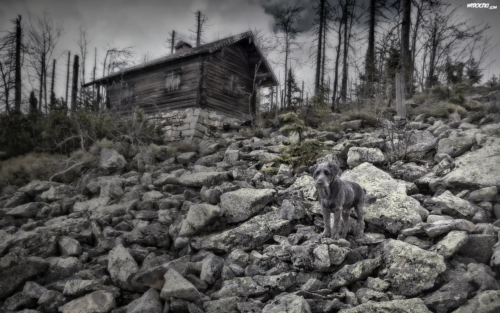 Zdjęcia, Piesek, Kamienie, Domek