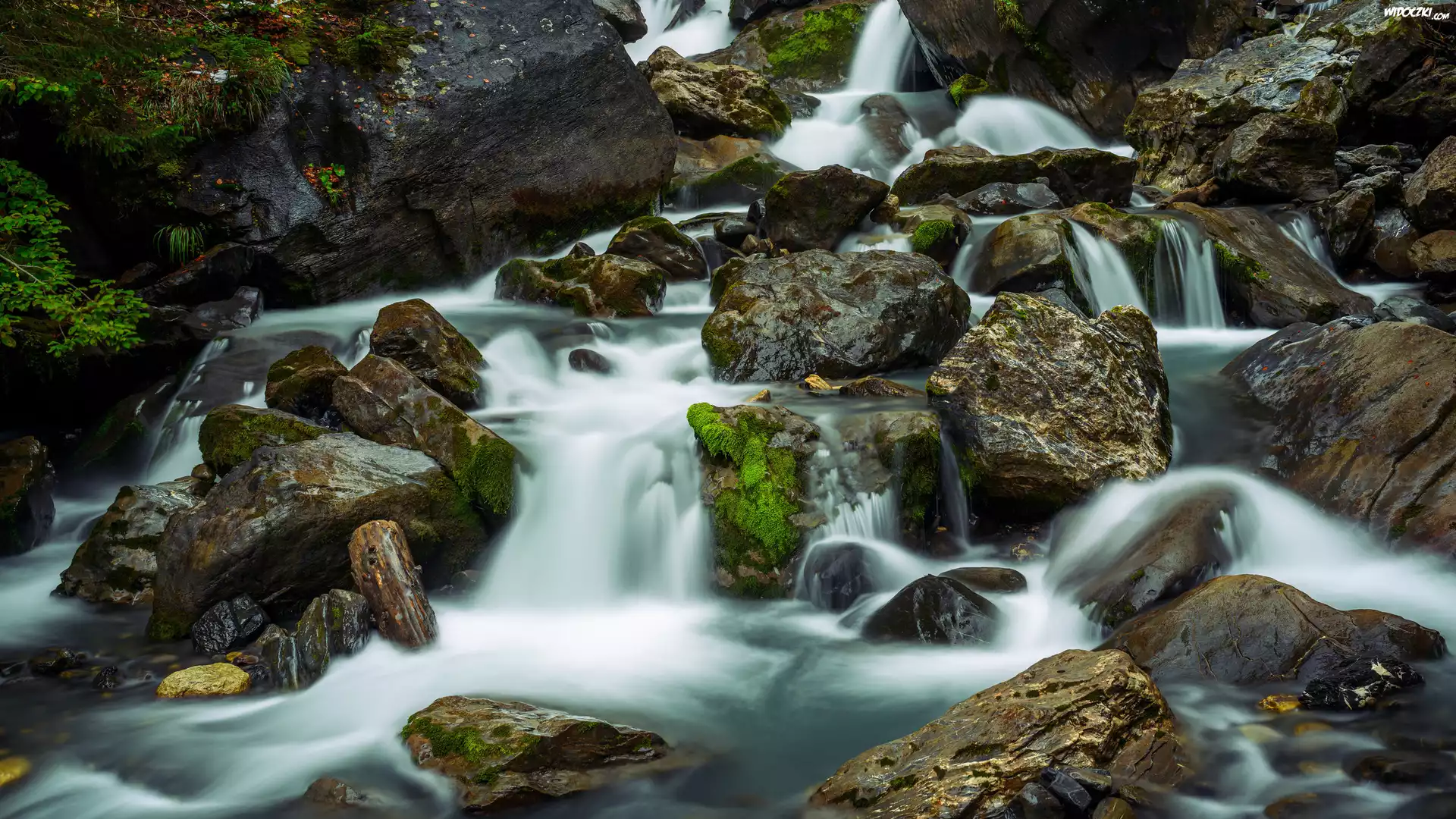Zdjęcia, Rzeka, Skały, Głazy, Kamienie, Mech, Roślinność