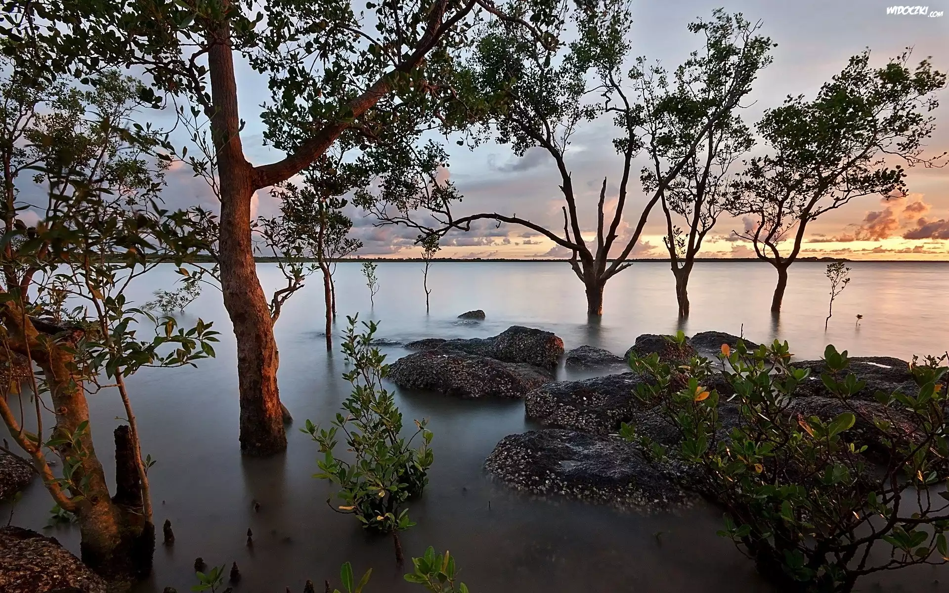 Zdjęcia, Rzeka, Kamienie, Drzewa