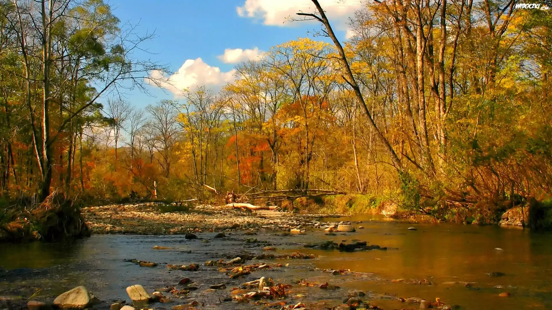 Zdjęcia, Rzeka, Kamienie, Drzewa