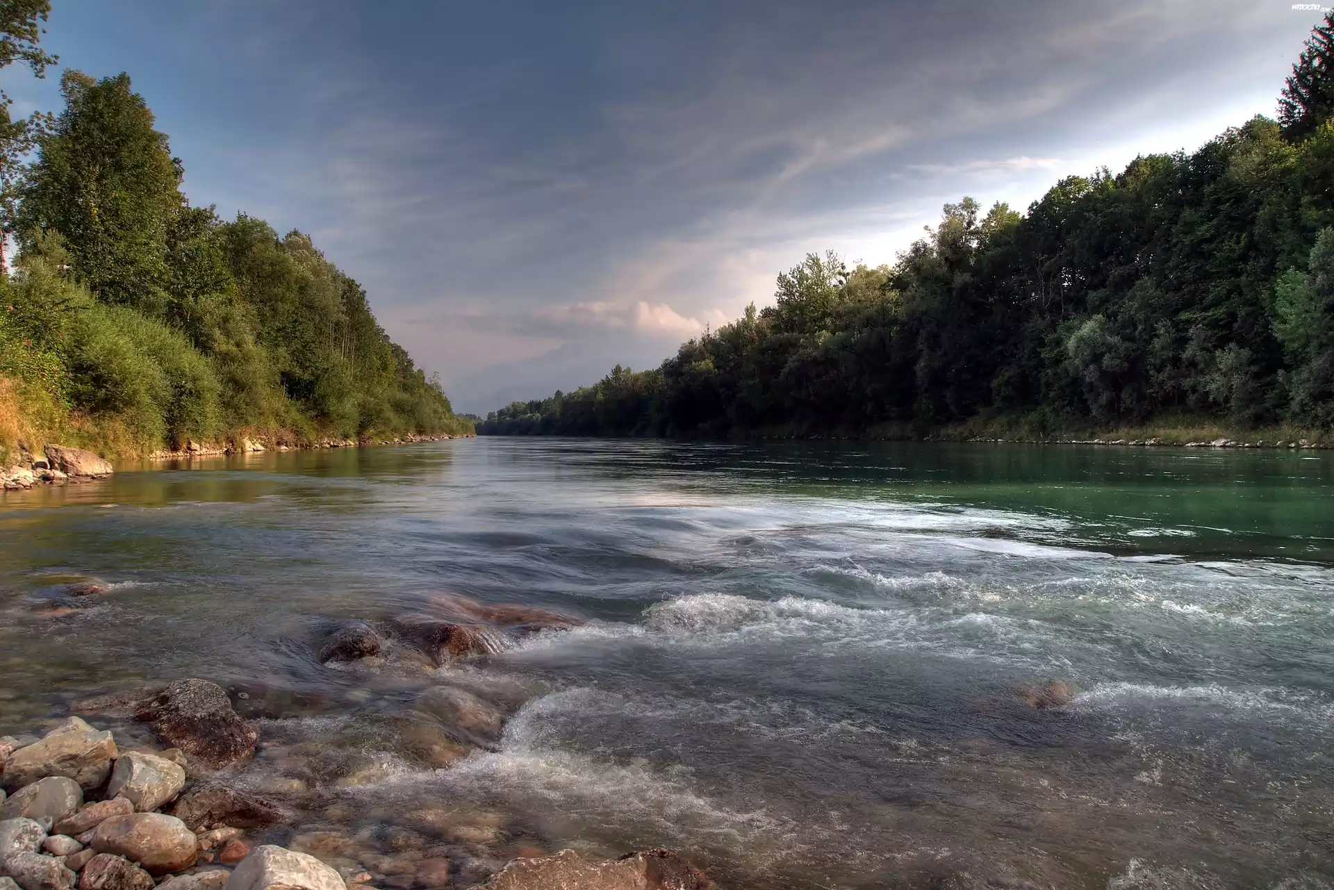 Rzeka, Kamienie, Las