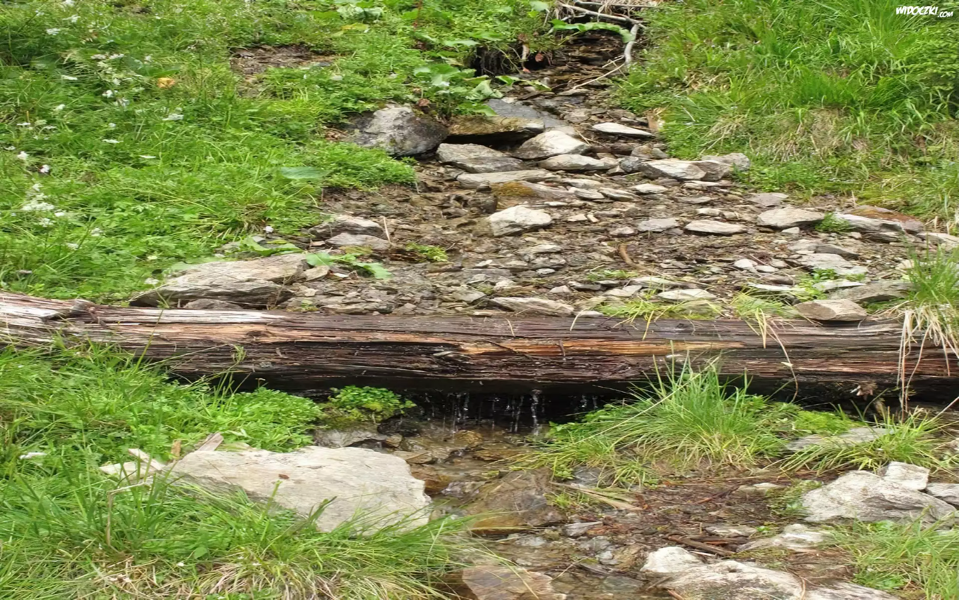 Zdjęcia, Strumyk, Kamienie, Kłoda