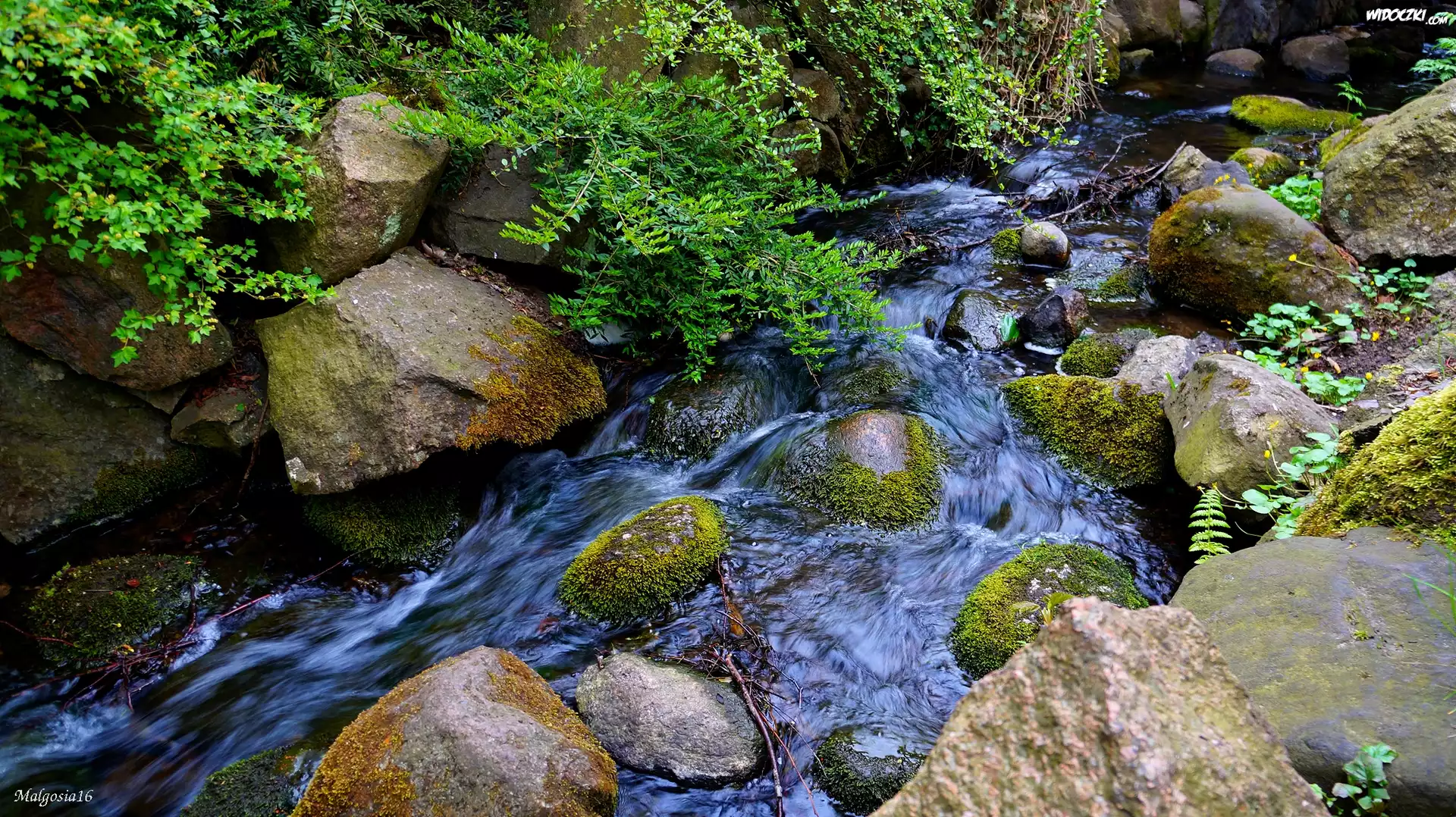 Zdjęcia, Kamienie, Mech, Woda, Strumyk, Rośliny