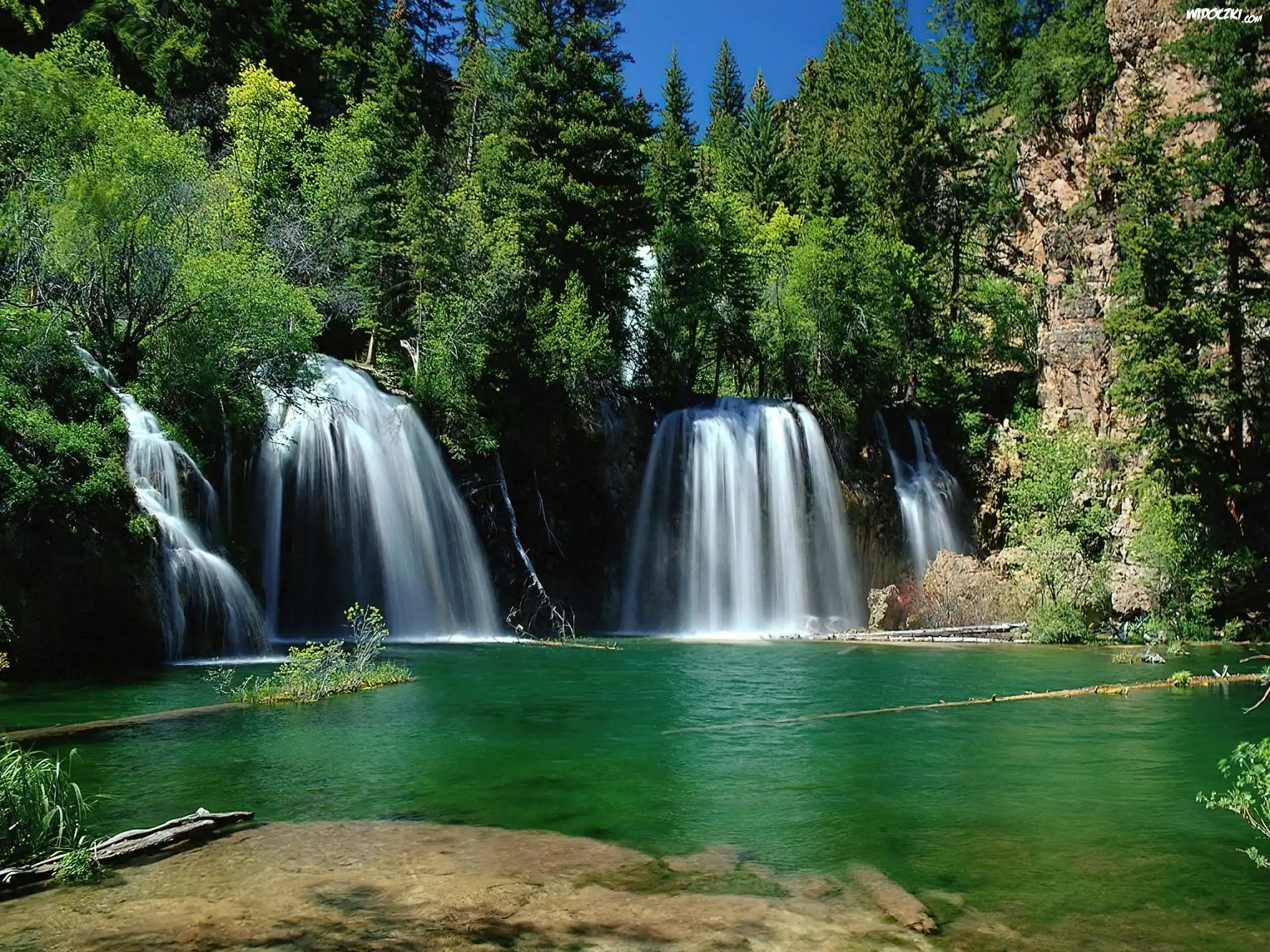 Wodospad Wodospad Drzewa Jezioro, Wodospad, G贸ry Wodospady Szeroki Wodospad Wodospad, je艣ie艅 wysoki Wodospad Wodospad T臋cza, Kanion, Wodospadu, Republika Zambii Wodospad Wodospad, W艣r贸d, Ska艂 Wodospad G贸ry Wodospad, Lato Wodospad, drzewa
