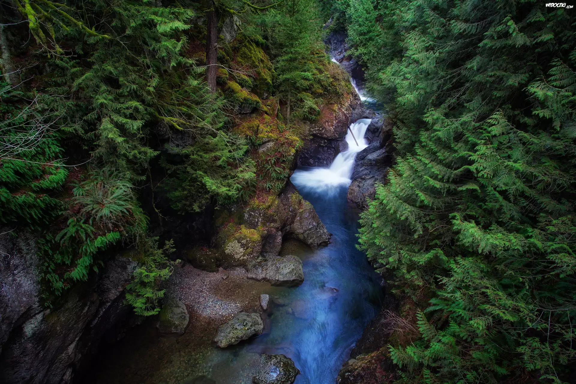 Zdj臋cia, Wodospad, Kamienie, Drzewa