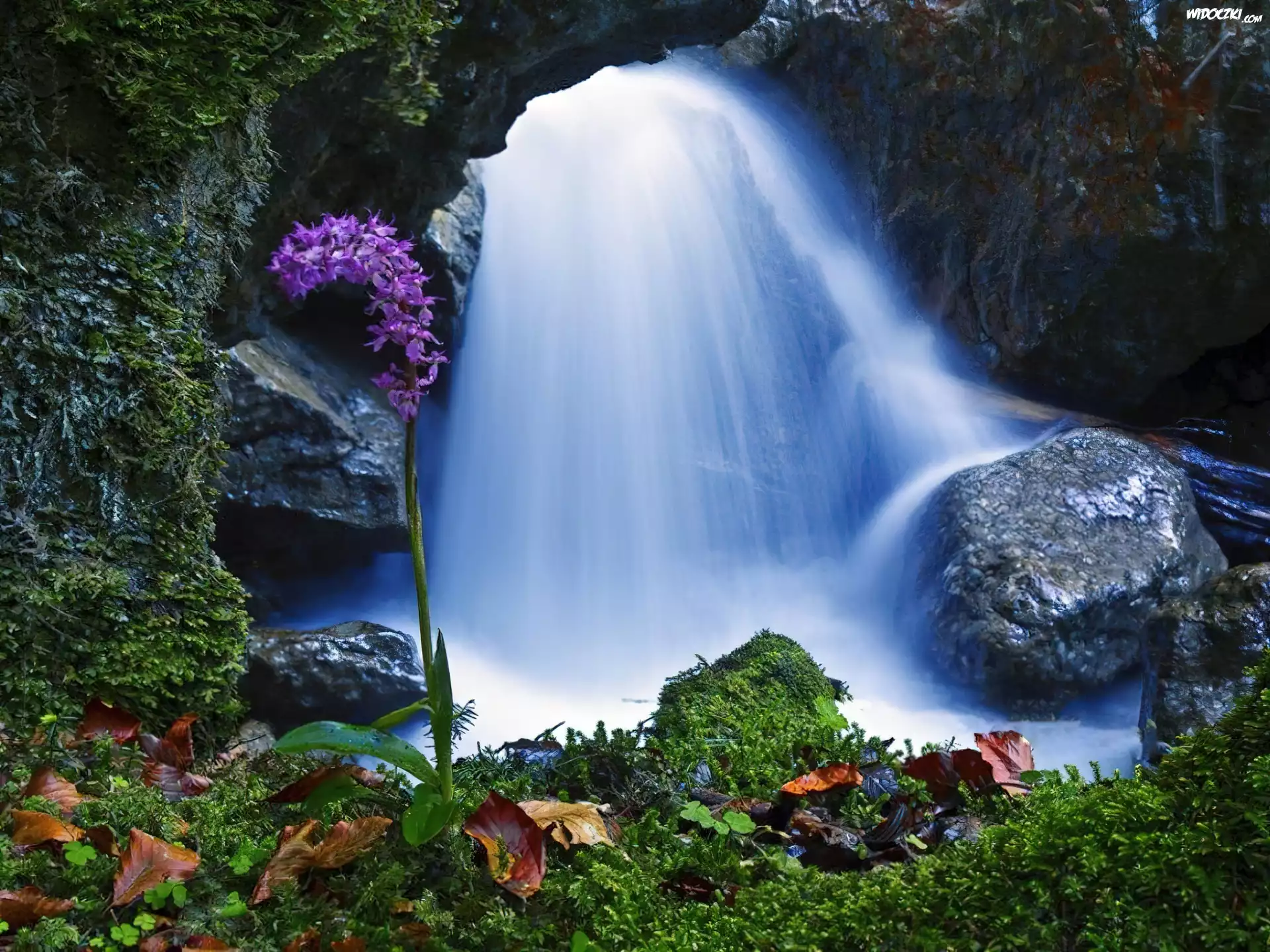 Zdj臋cia, Wodospad, Kamienie, Kwiatki