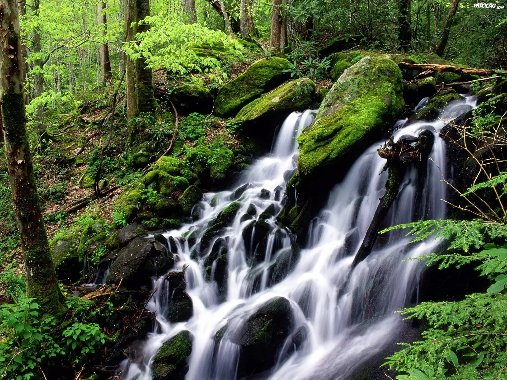 Zdjęcia, Wodospad, Kamienie, Las