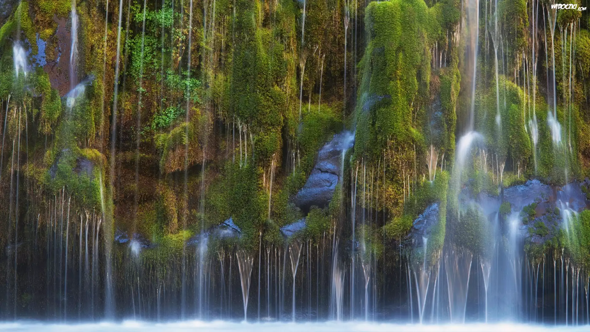 Skały, Omszałe, Kamienie, Zieleń, Wodospad Mossbrae Falls, Dunsmuir, Kalifornia, Stany Zjednoczone |