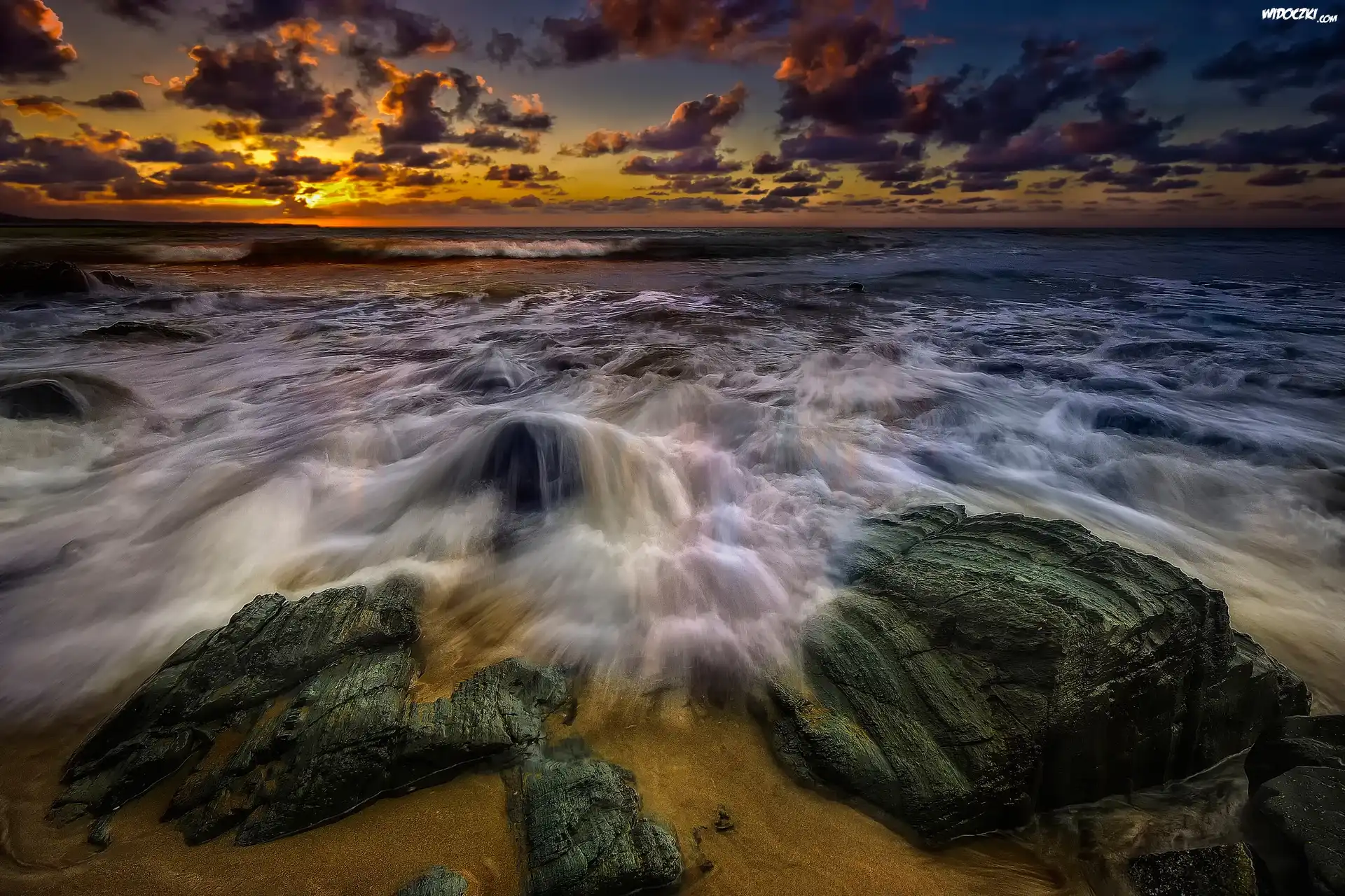 Zdjęcia, Kamienie, Morze, Brzeg, Zachód, Słońca