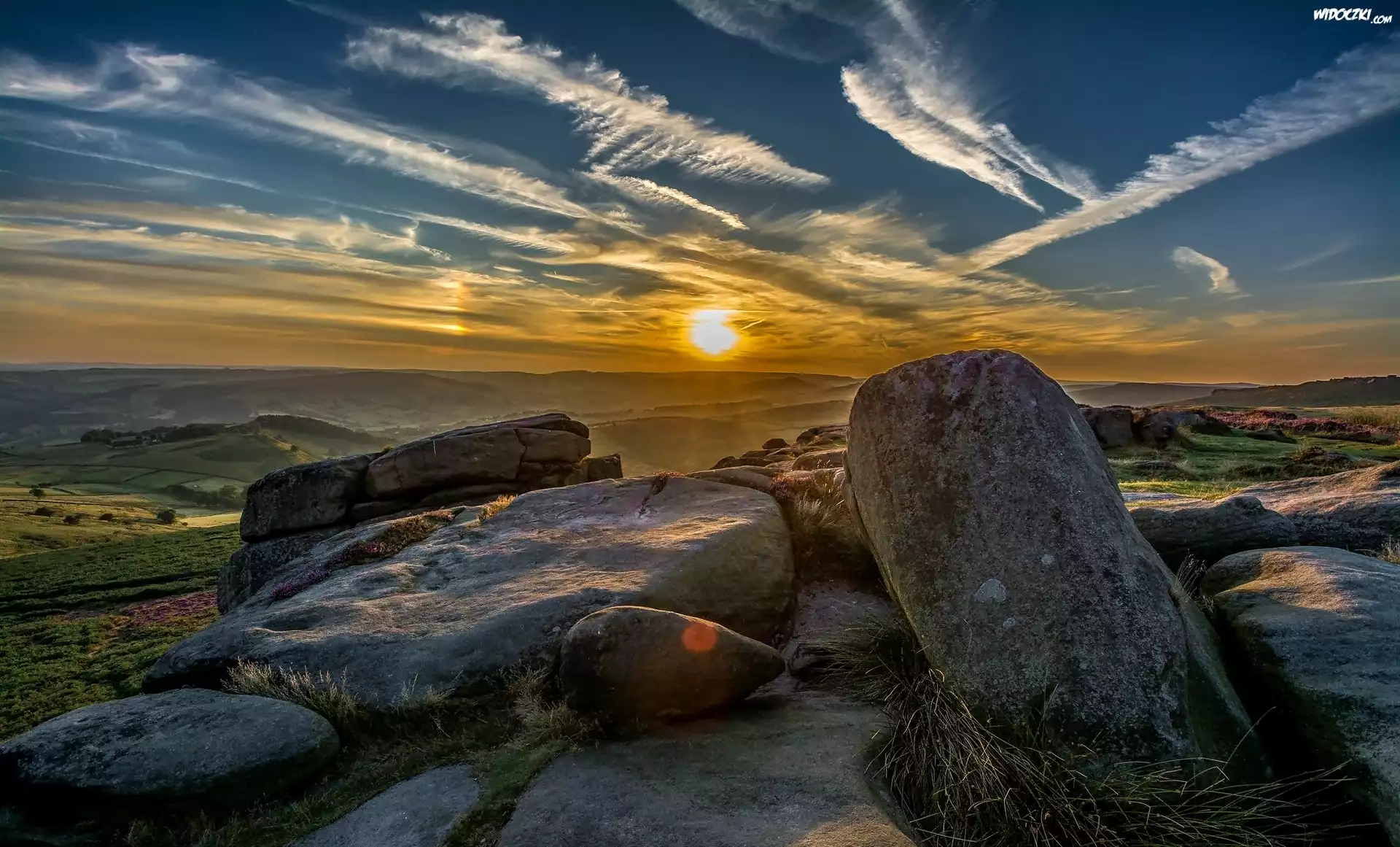 Zdjęcia, Kamienie, Pole, Zachód, Słońca