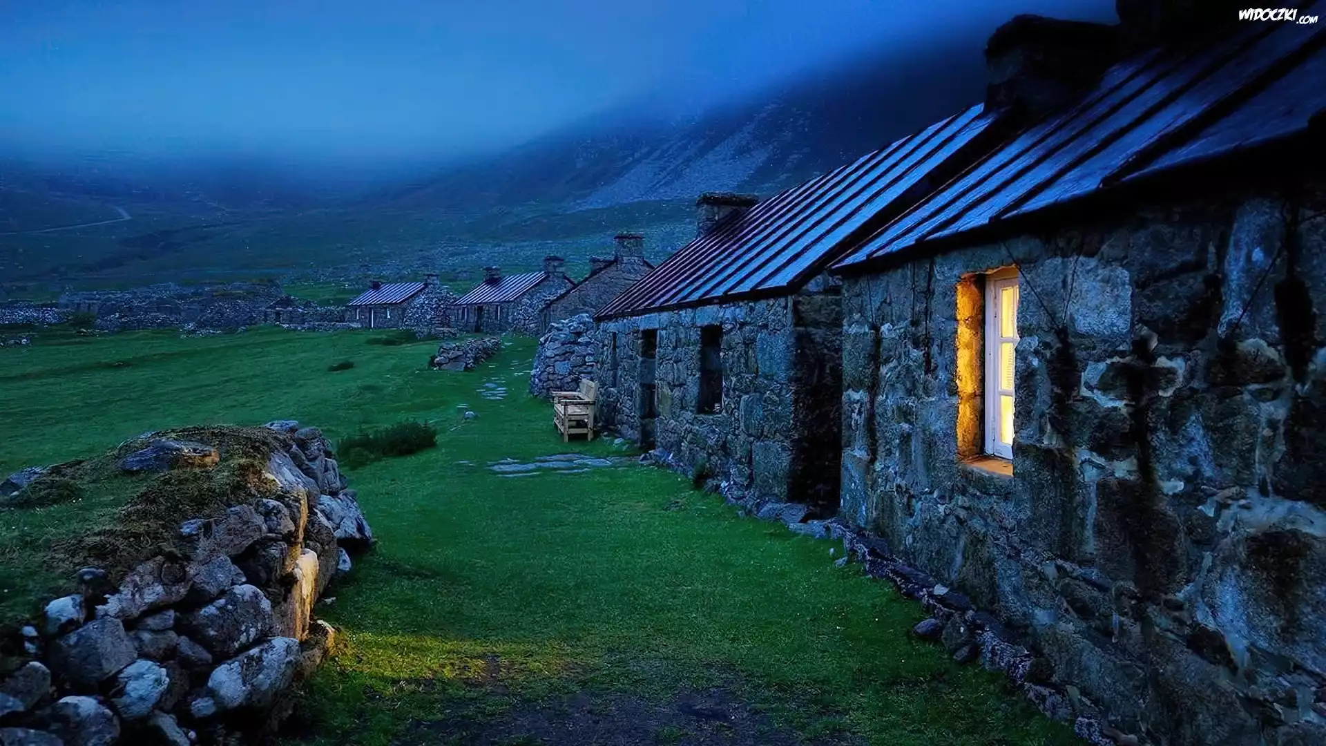 Zdjęcia, Kamienne, Domy, Góry, Mgła