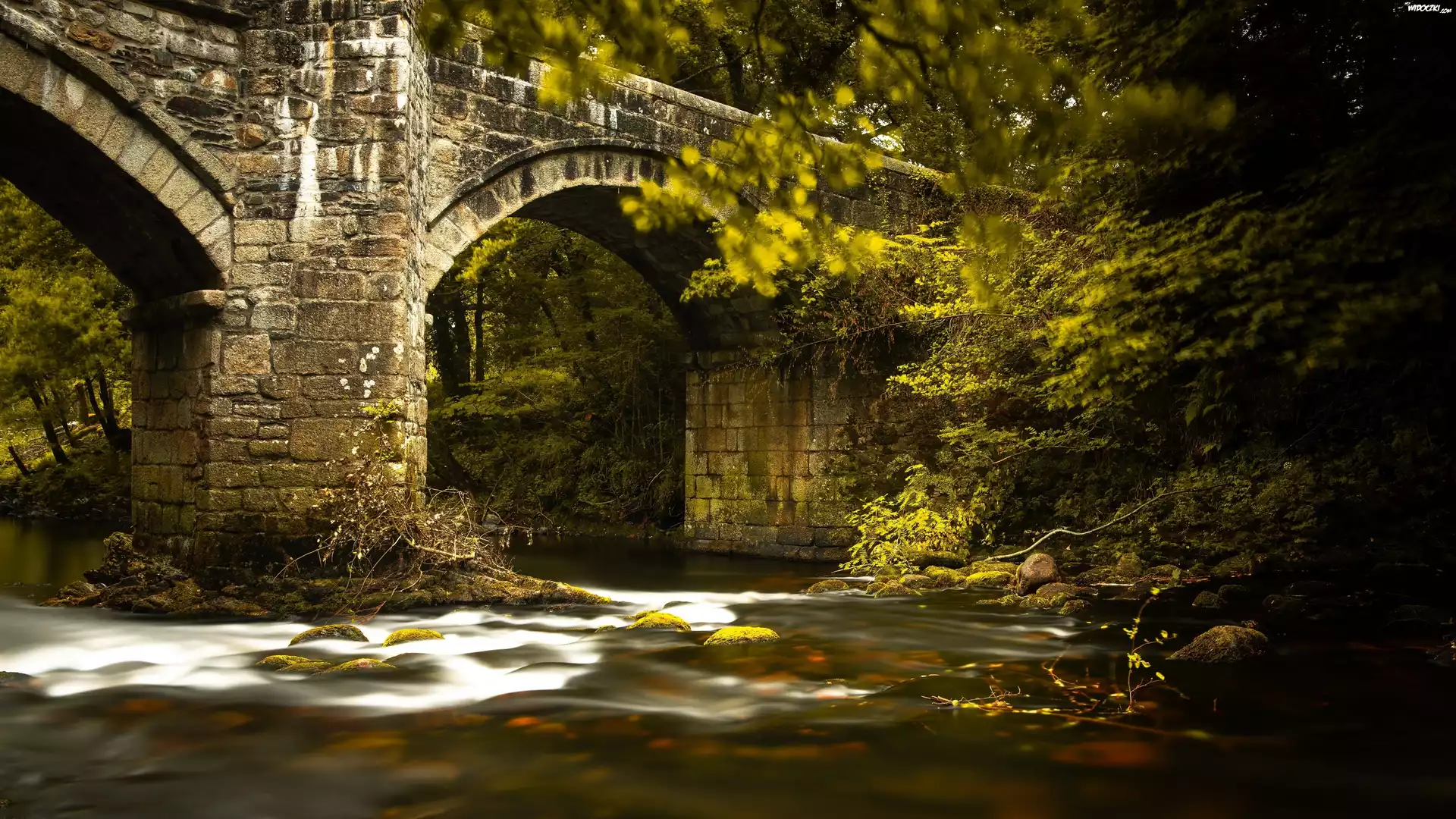 Zdjęcia, Kamienny, Most, Rzeka, Las, Drzewa