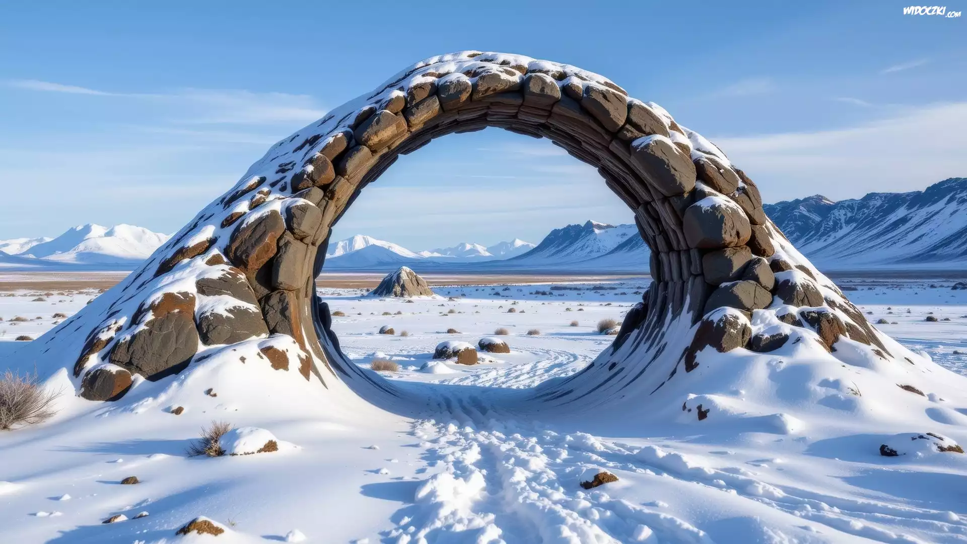 Zdjęcia, Zima, Kamienny, Łuk, Ośnieżone, Góry