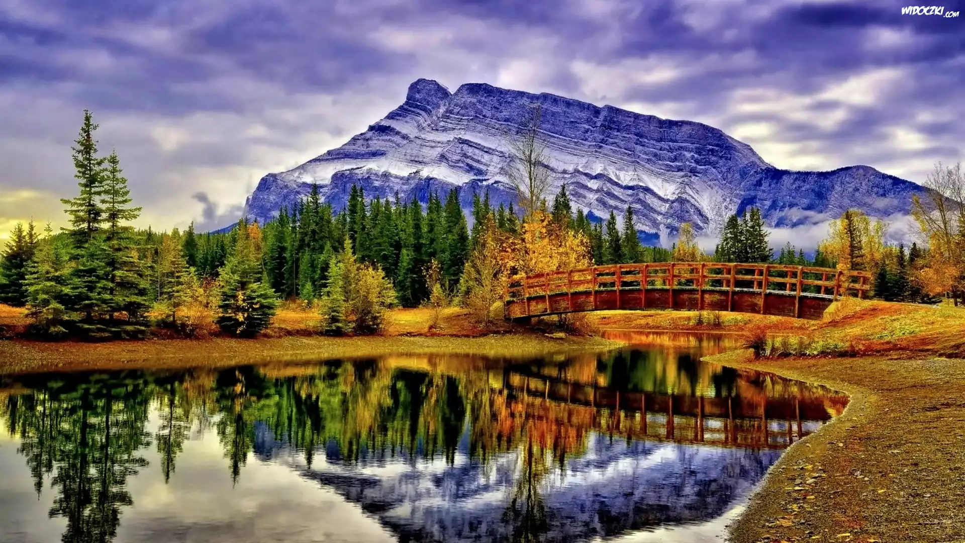 Zdjęcia, Park, Narodowy, Banff, Góry, Lasy, Rzeka, Most, Jesień, Kanada