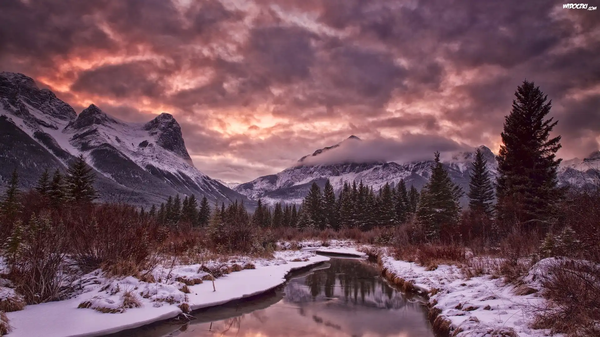 Iglak, Igły, Śnieg Zima, Drzewa, Szron, Rzeka Góra, Zima Rzeka, Góry Noc, Drzewa, Księżyc Śnieg, Choinki, Zima Płot, Młyn, Wodny Zachód Słońca, Chmura, Rzeka extremalne Kajakarstwo, Mostek,  Rzeka Zima,konie Strumienik Zima, Śnieg, Lód, Owoce Pola, Rzeka, Drzewa, Chmury Czerwony Ciągnik, Góra, Niebo