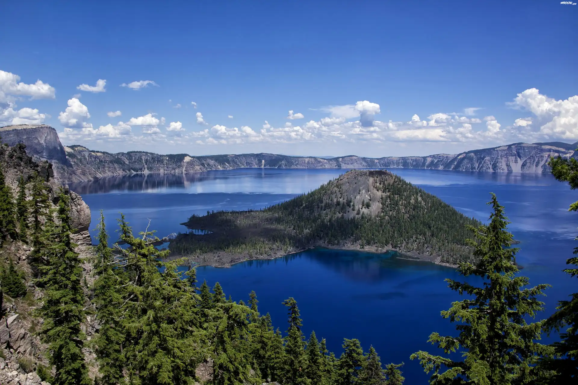 Kanada, Jezioro, Wyspa, Góry, Drzewa