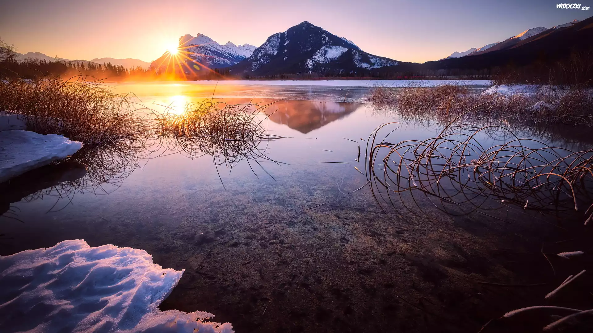 Zdjęcia, Park Narodowy Banff, Góry, Jezioro Vermilion Lake, Trawy, Zima, Kanada