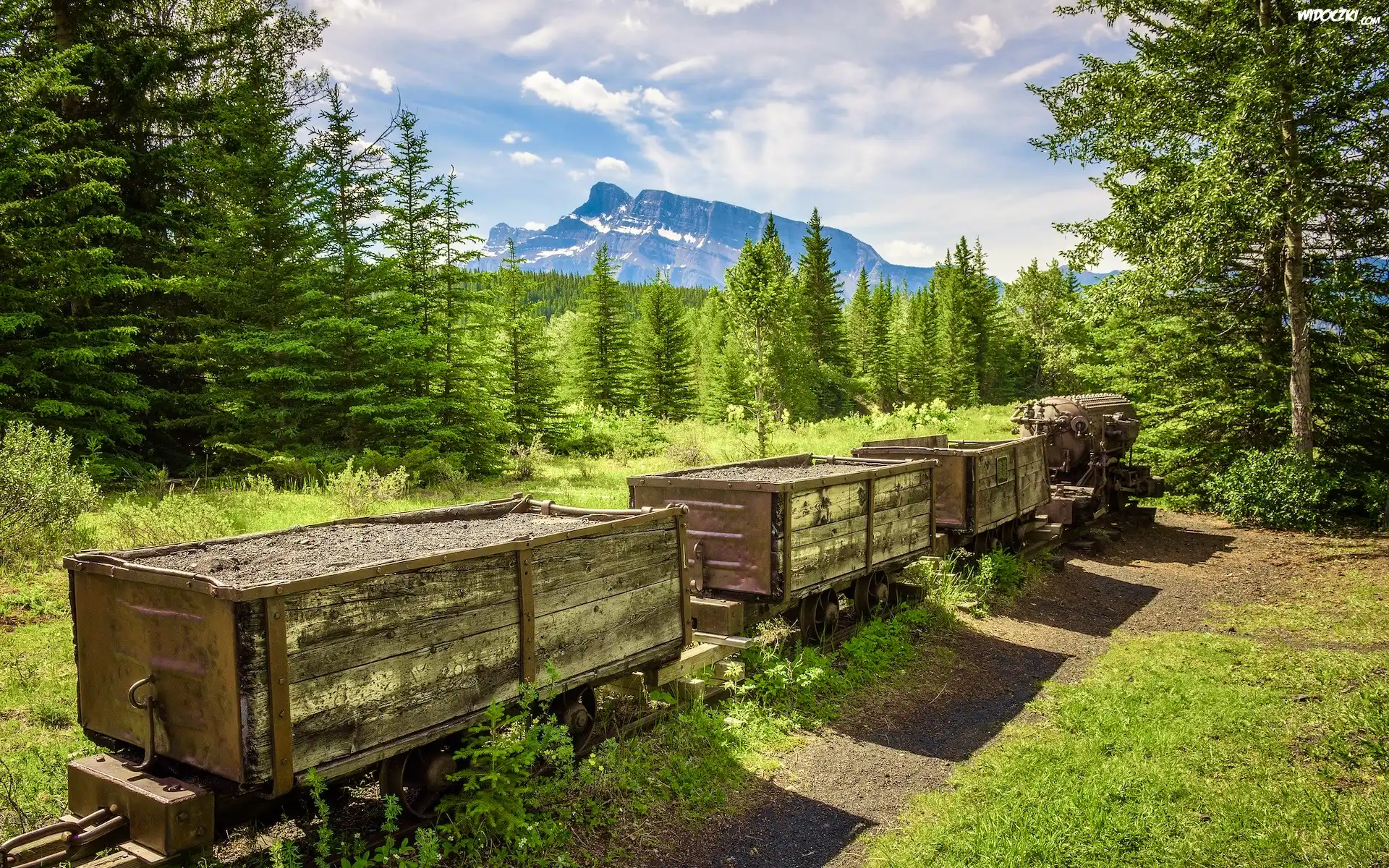 Zdjęcia, Kanada, Alberta, Lasy, Drzewa, Góra, Mount Rundle, Park Narodowy Banff