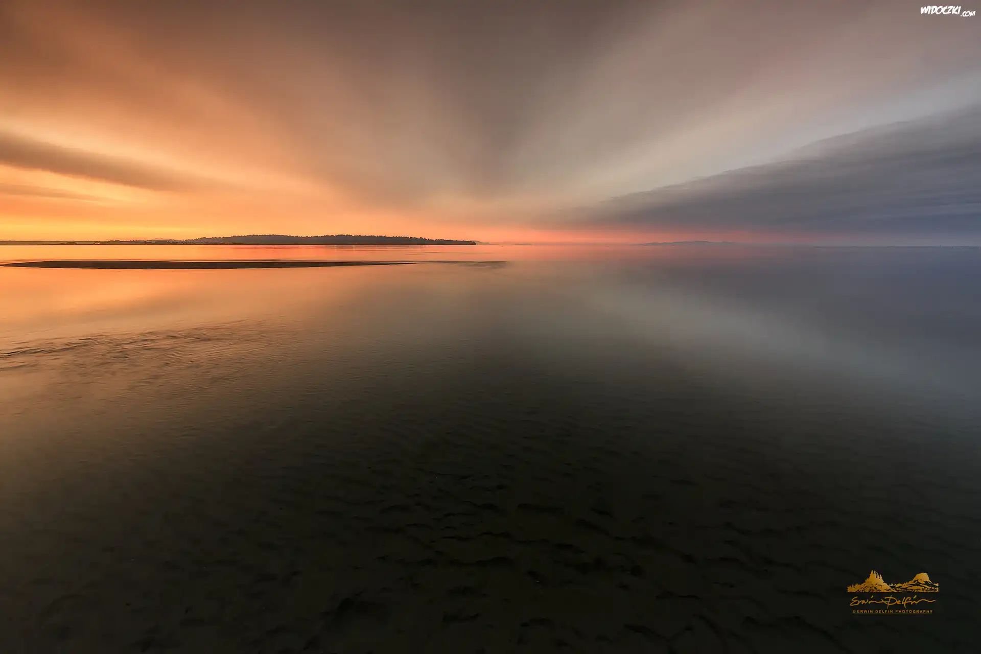 Wschód słońca, Morze, Zatoka Semiahmoo, White Rock, Kolumbia Brytyjska, Kanada
