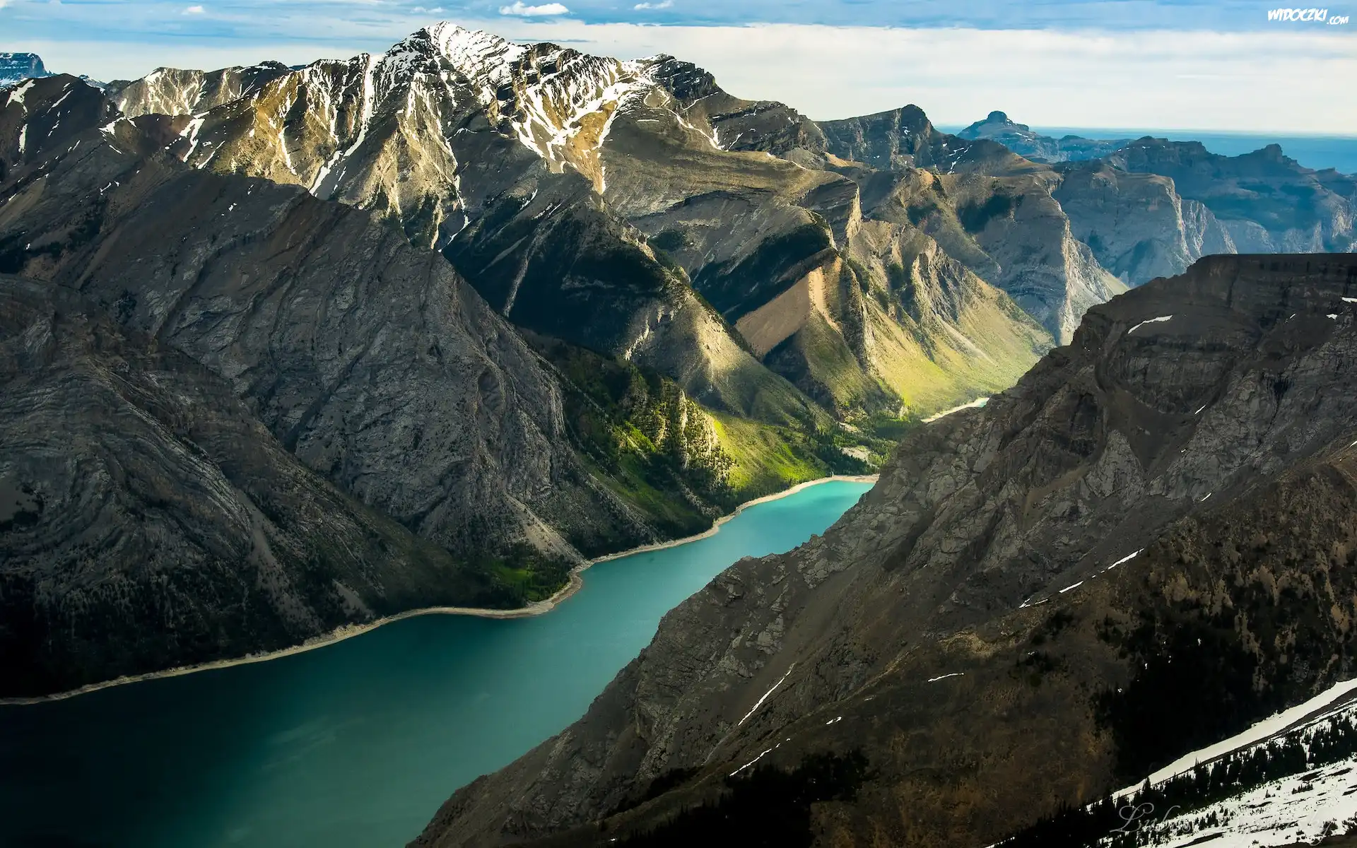 Zdjęcia, Jezioro, Lake Minnewanka, Góry Skaliste, Park Narodowy Banff, Alberta, Kanada