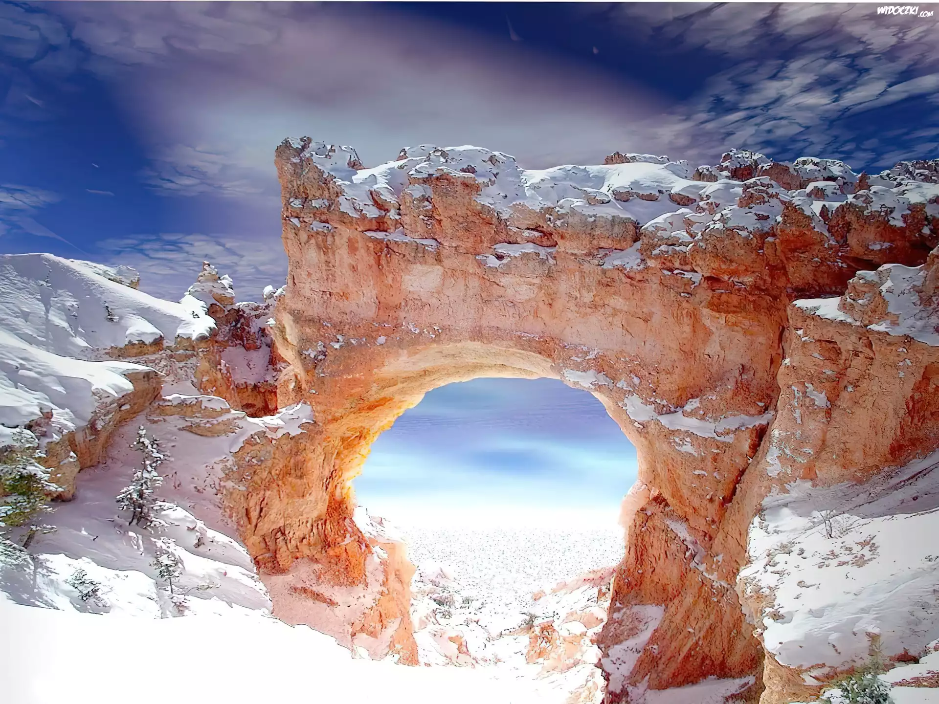Zdjęcia, Kanion, Łuk, Skalny, Śnieg, Zima