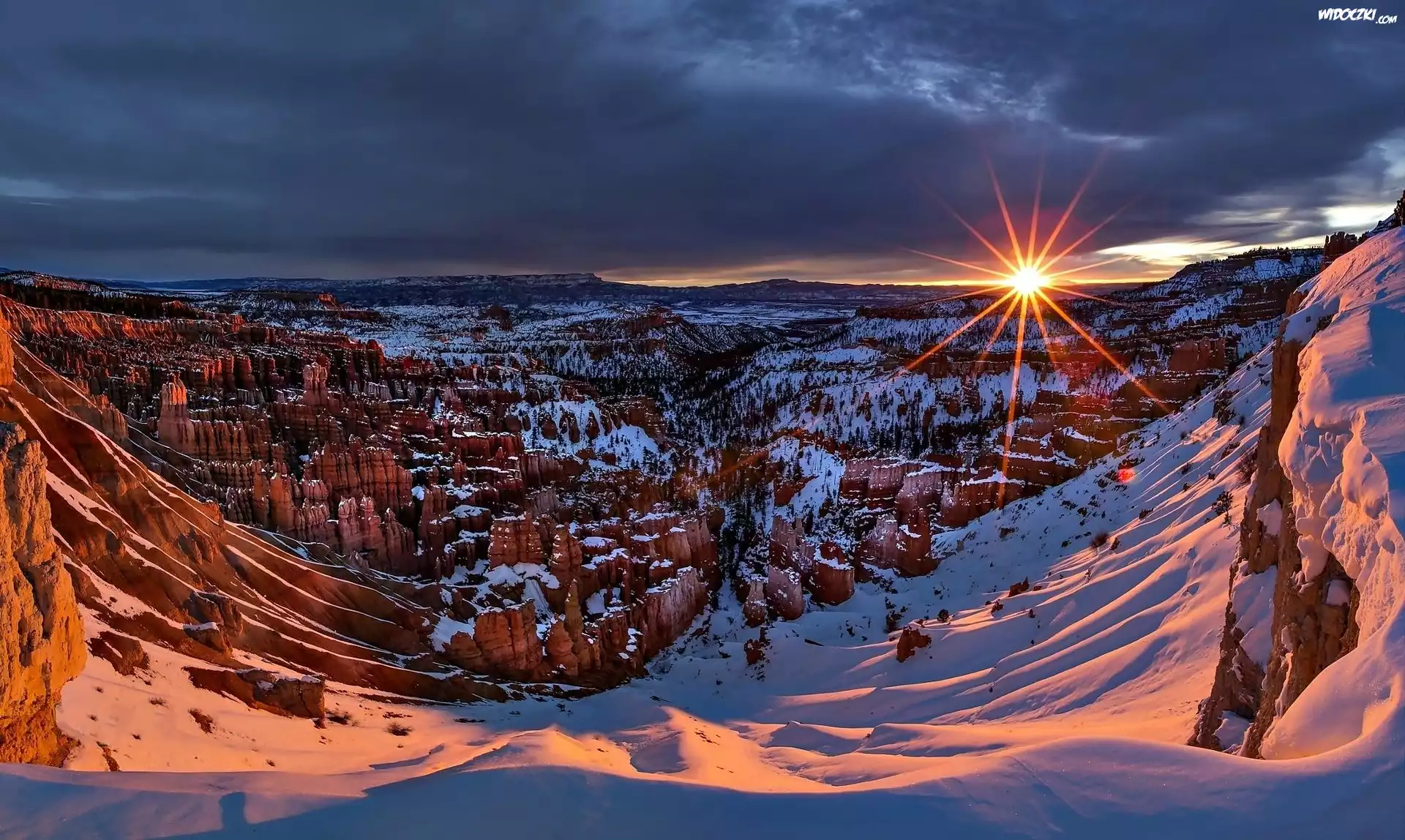 Zdjęcia, Kanion, Skały, Śnieg, Promienie słońca, Zima