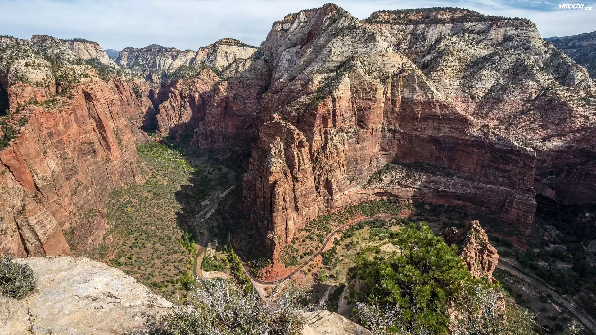 Kanion, Formacja skalna Angels Landing, Podest Aniołów, Park Narodowy Zion, Góry, Skały, Stan Utah, Stany Zjednoczone |