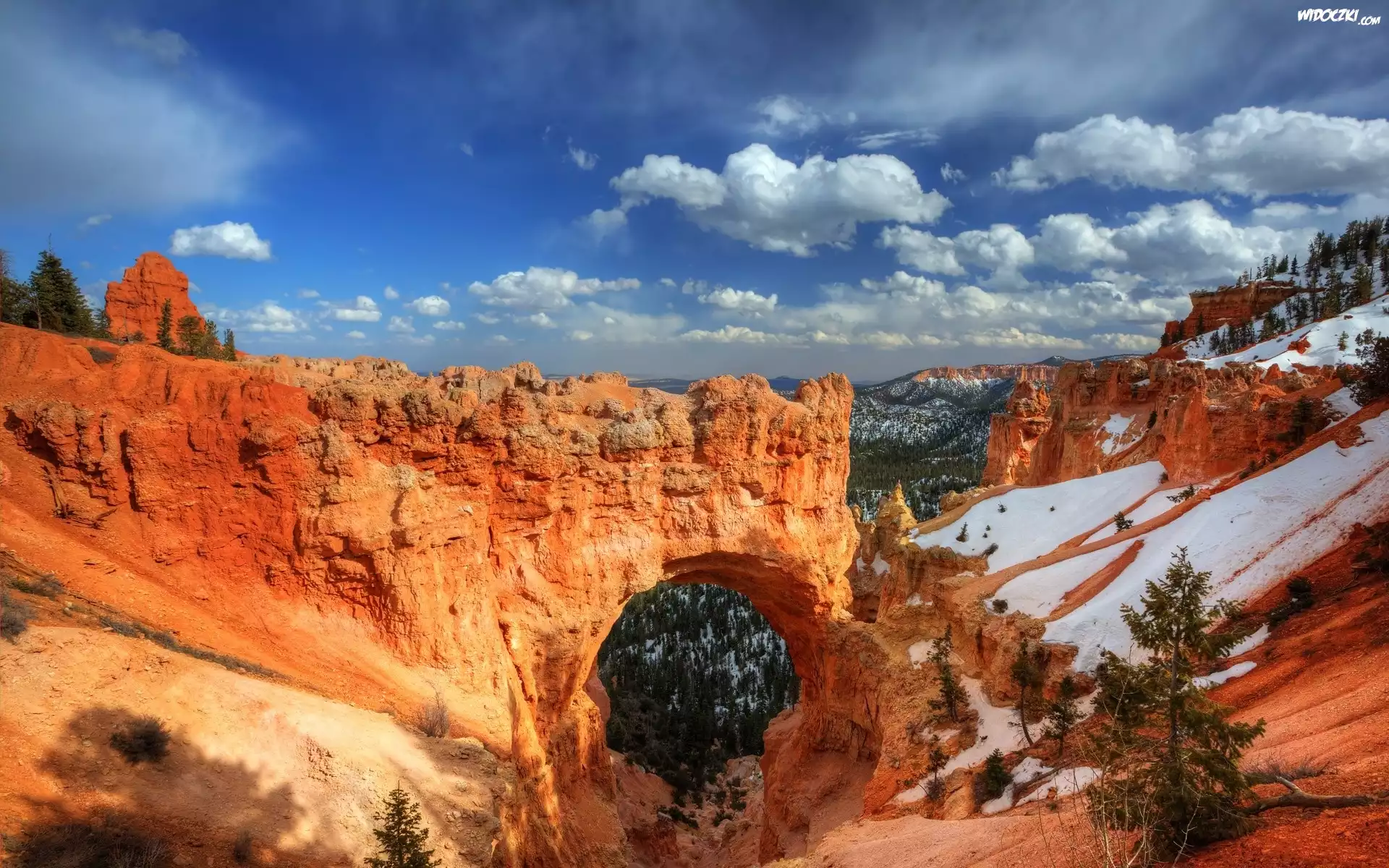Zdjęcia, Kanion, Śnieg, Świerki, Chmury