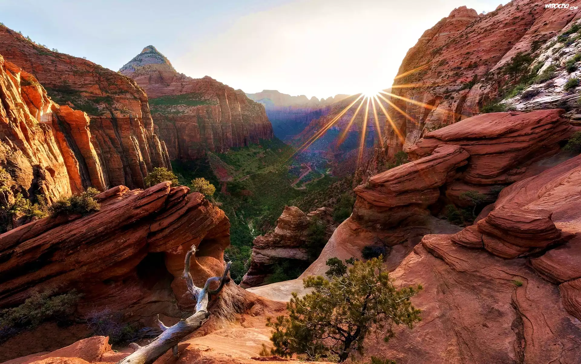 Zdjęcia, Kanion, Gór, Dolina, Wschód słońca