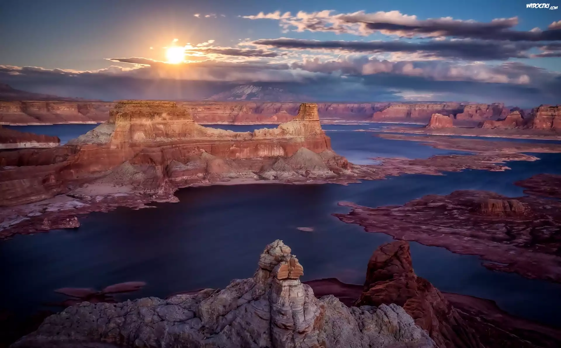 Zdjęcia, Kanion, Rzeka, Wschód, Słońca
