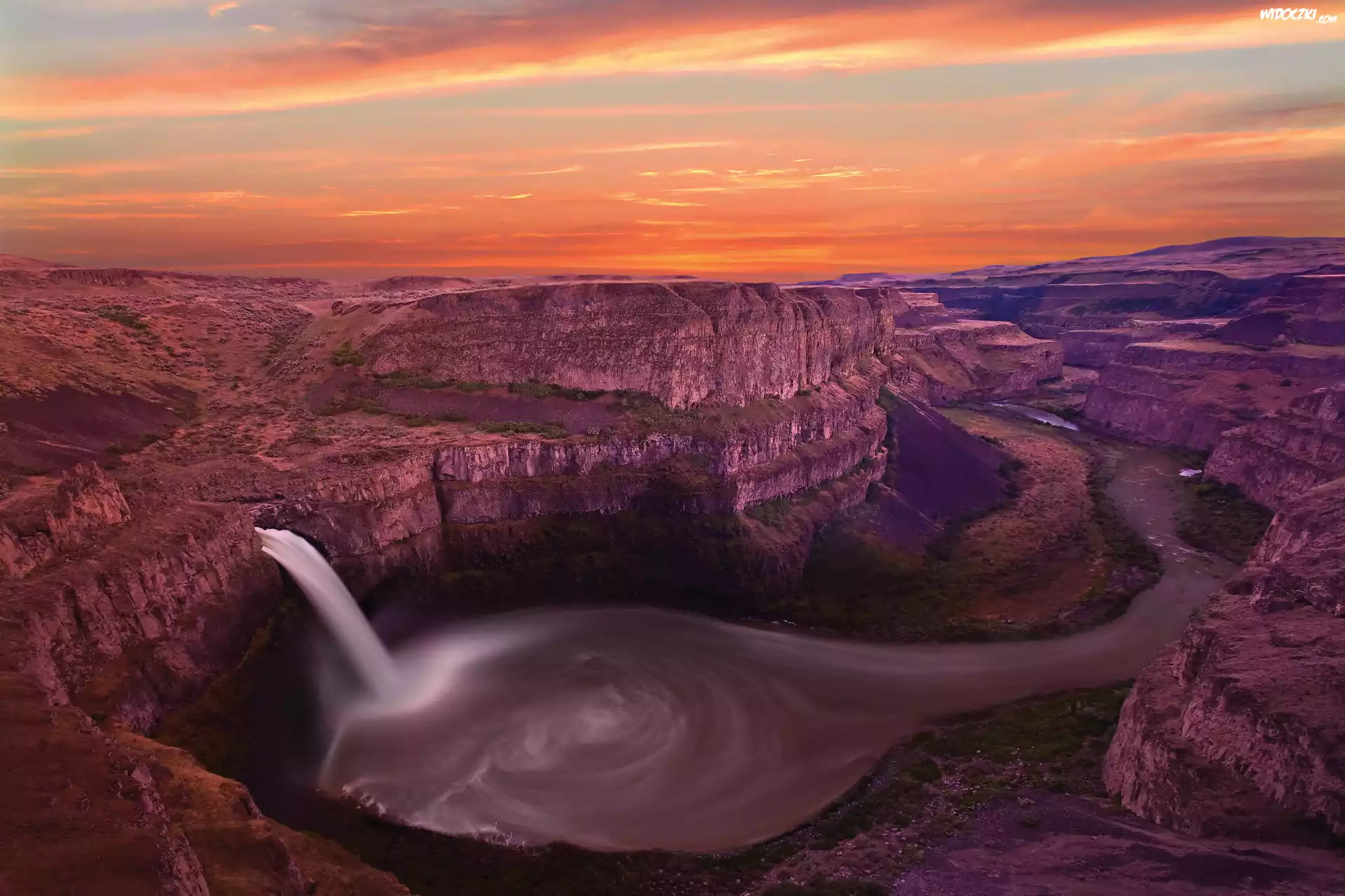 Zdjęcia, Kanion, Wodospad, Zachód, Słońca