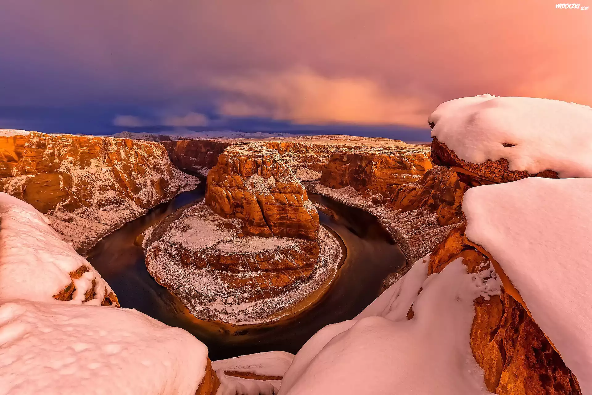 Krajobraz, Kanion, Jezioro Góra, Zima, Niebo Zachód, Słońca, Kanion, Rzeka Wodospad, Drzewa, Rzeka Góry, Kanion Kanion, Rzeka Zima, Biały, Wilk, Wycie Góry, Choinki, Zima Kanion, Czerwone, Skały, Śnieg Góry, Lasy, Rzeka, Łódka Zima, Drzewa Zima, Noc, Padający, Śnieg Góry, Kanion Kanion